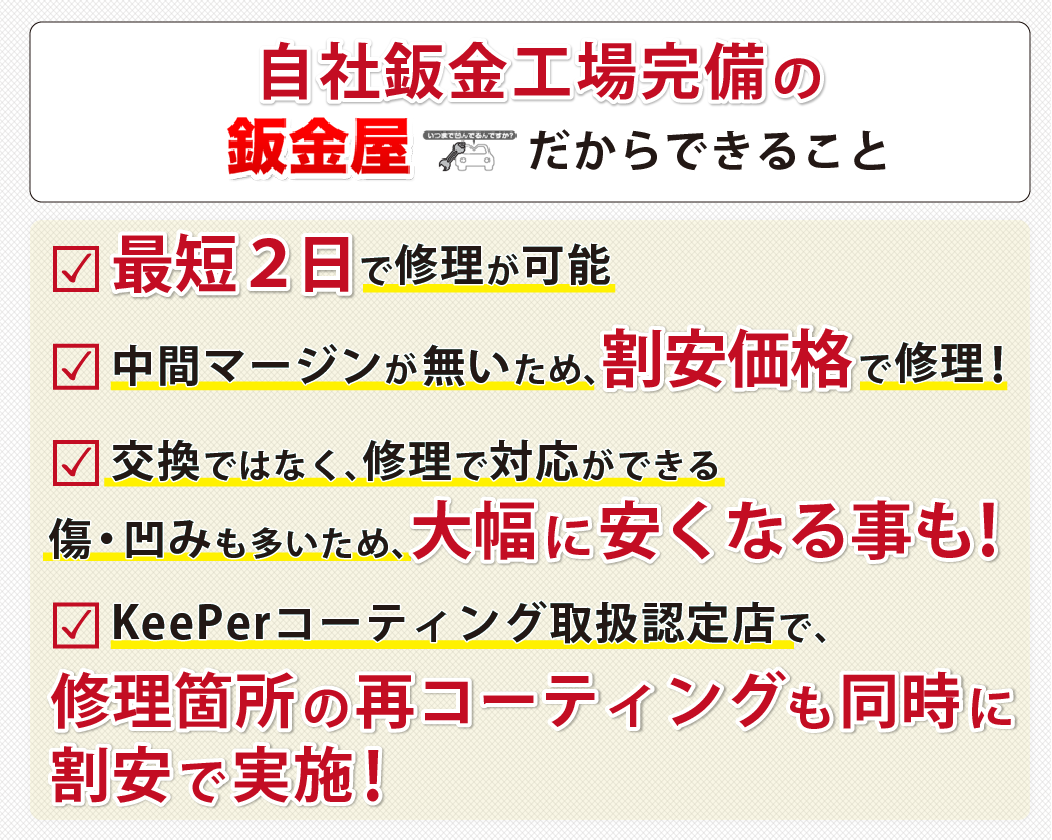 安くて手厚いです。重宝しています。(鈑金屋一宮店)
